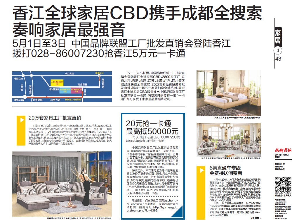5月1日至3日,????? ???????????????????? ???????????????????? ???????????????????? ???????????????为了方便成都主城区市民和消费者前往????? ???????????????????? ???????????????????? ??????????????????? ???????????????本次“中国品牌联盟工厂批发直销会”活动现场,主办????? ??????????????????? ???????????????????? ???????????????????? ???????????????方还特别在市区四川日报报业大厦、????? ???????????????????? ???????????????????? ???????????????????? ??????????????建设路SM广场、欧尚超市????? ??????????????????? ???????????????????? ???????????????????? ??????????????金牛店旁、国美电器天府立交店旁等4个点位,专????? ???????????????????? ???????????????????? ???????????????????? ???????????????门开通了4条活动免费直通车专线,届????? ???????????????????? ???????????????????? ???????????????????? ???????????????时这4条专线将滚动发送班车,持续接????? ???????????????????? ???????????????????? ???????????????????? ???????????????送市民和消费者前往位于成都家具产业园的香江????? ???????????????????? ???????????????????? ???????????????????? ???????????????全球家居CBD活动现场。