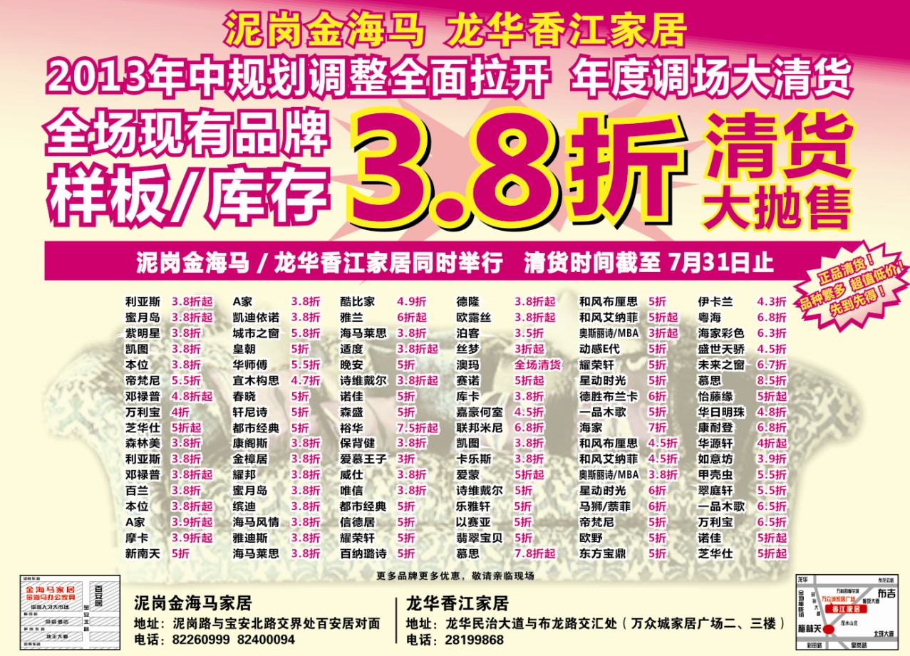 深圳·龙华香江家居/泥岗金海马????? ???????????????????? ???????????????????? ???????????????????? ???????????????家居年度调场3.8折大清货